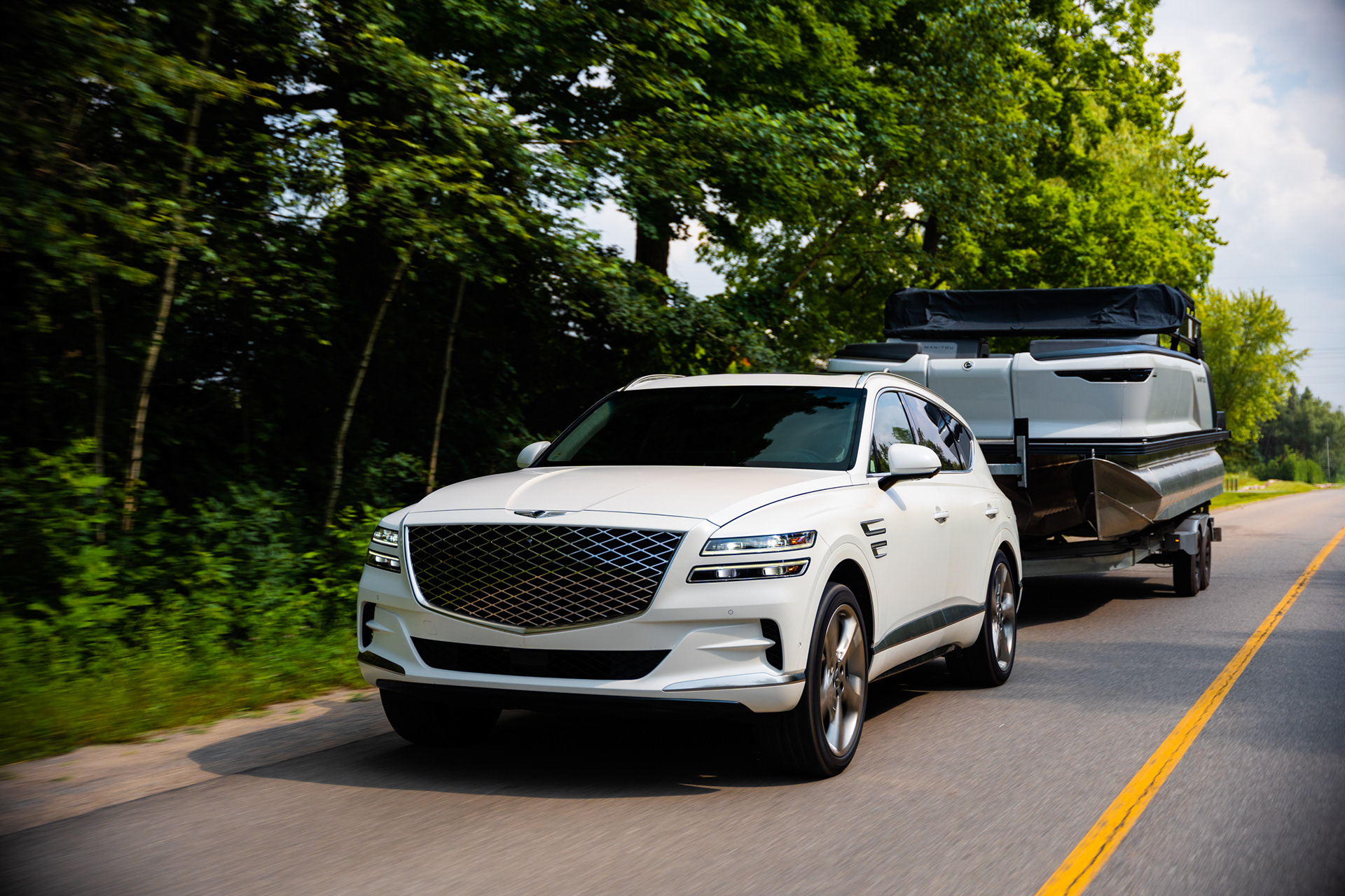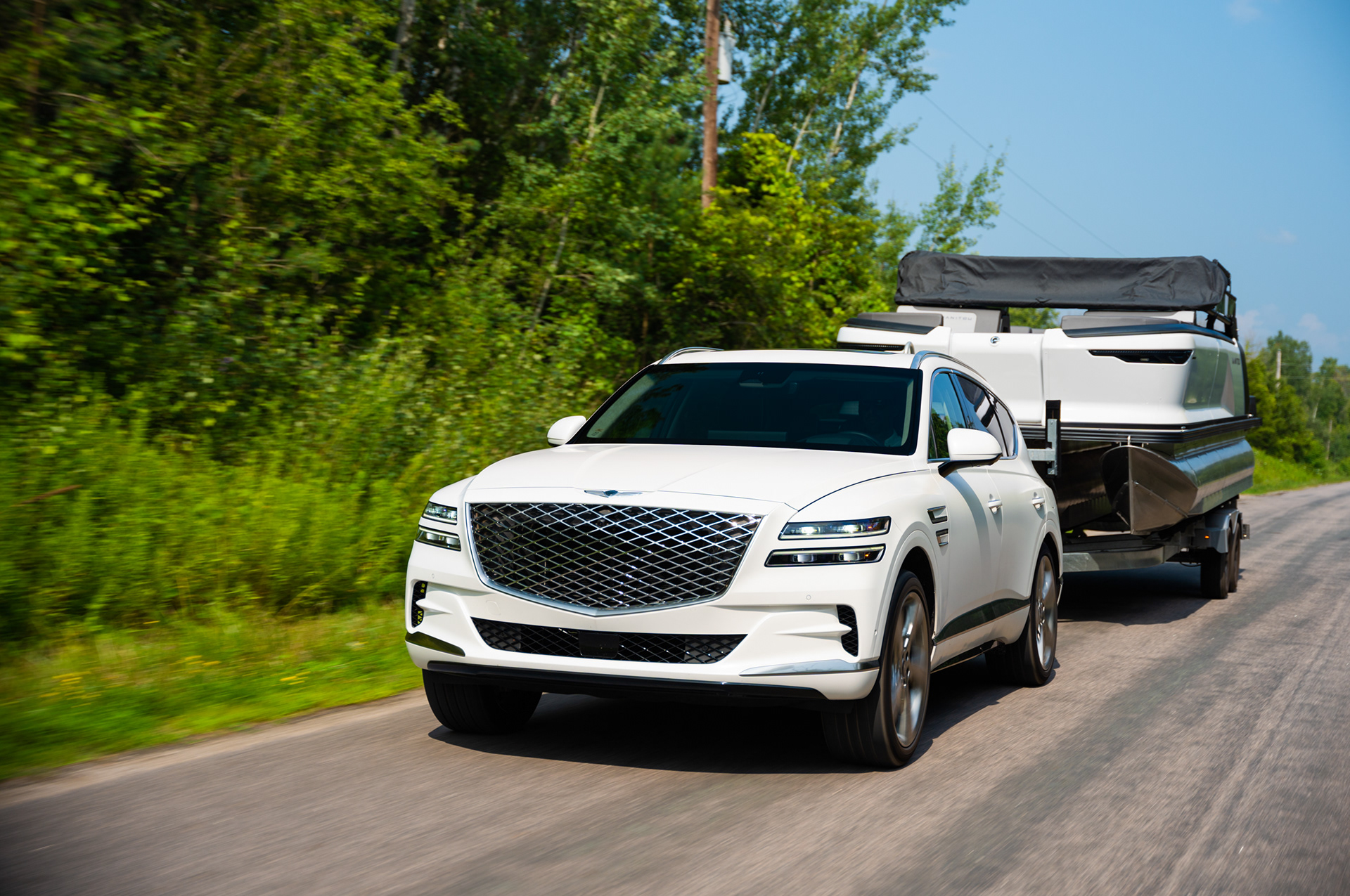 TO SHOWCASE THE TOWING POWER AND VERSATILITY OF THE GENESIS GV80, AUX MEDIA WAS ENGAGED TO DELIVER A FAST-TURNAROUND, COMMERCIAL-QUALITY SHOOT — ALL ON A TIGHT BUDGET. GENESIS PARTNERED WITH MANITOU PONTOON BOATS TO SECURE A LUXURY WATERCRAFT, ALLOWING US TO CAPTURE THE GV80 IN ACTION WITH A REAL-LIFE TOW SCENARIO THAT BALANCED PERFORMANCE WITH PREMIUM AESTHETICS.